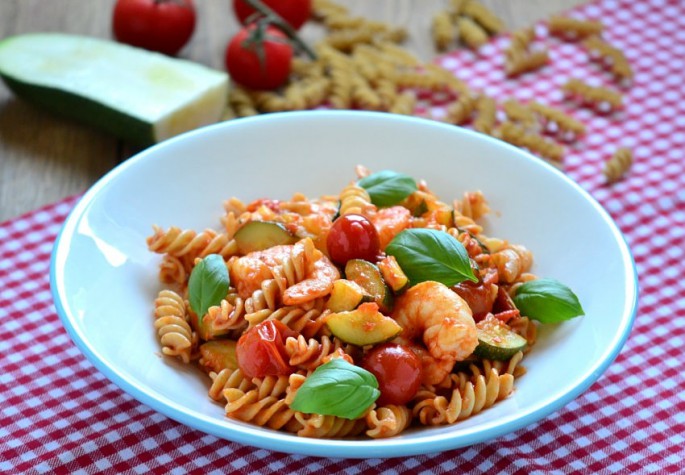 Orsótészta cukkinivel, koktélparadicsommal és rákkal