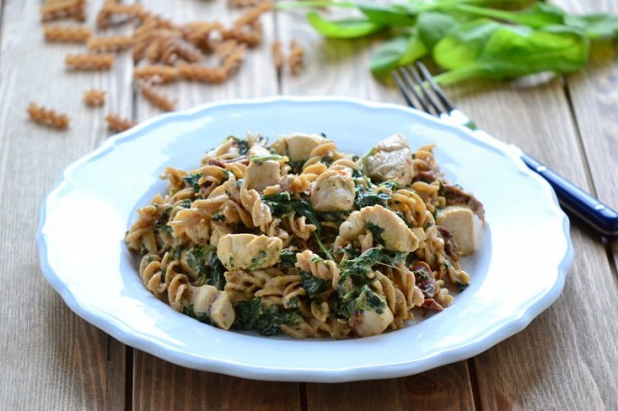 1. Tegyünk fel forrni vizet a tésztának. A csirkemellet vágjuk kisebb csíkokra, vagy kockákra. A megpucolt fokhagyma gerezdeket vágjuk vékony szeletekre.